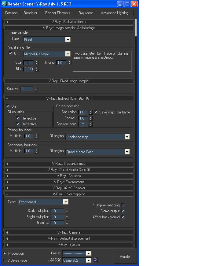 Hola a todos antes que nada. Pues para contarles que tengo un problema, estoy comenzando con esto del Vray, y algunas cosas interesantes me están saliendo, sin embargo, el último trabajo que tengo, me salen los bordes algo dentados y no afilados como debería ser una geometría correcta, buscando por el buscador (valga la redundancia) encontré acerca de los antialiasing filters, y bueno, intente con eso también (para ser más exactos el catmun-roll y el mitchelle-Netravalli), pero, aun así, no consigo que se elimine este problema.
