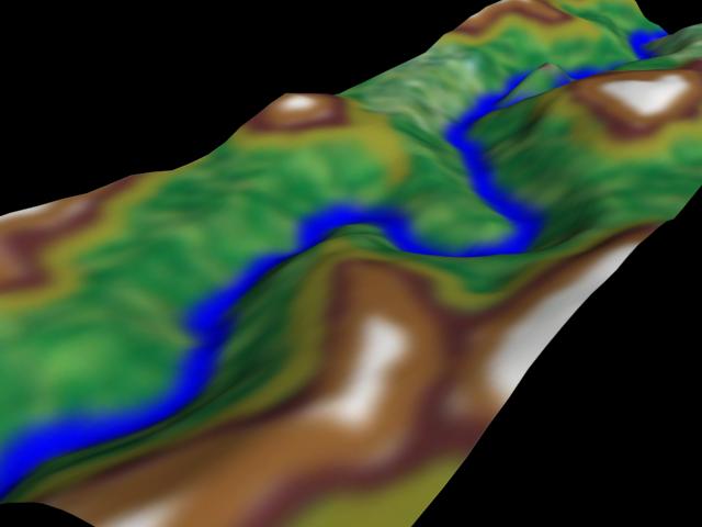 El terreno lo he hecho a partir de un dem con un modificador de desplazamiento y una fotografía de satélite. De momento parece que es suficiente.