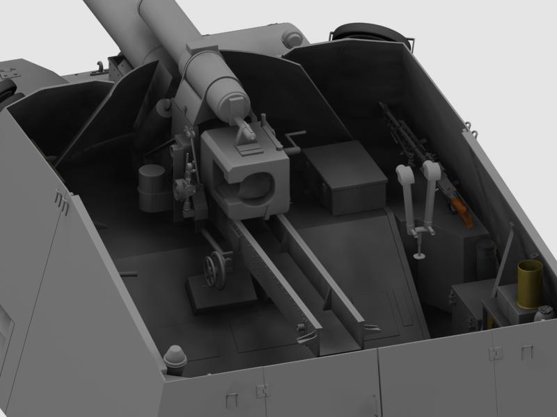 También estoy intentando hacer mejor que en el Dicker Max la diferencia del interior y del exterior de la casamata. Y el cañón ya está acabado también.