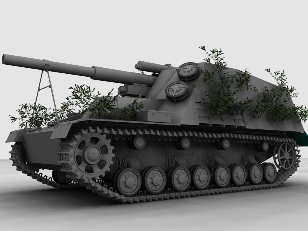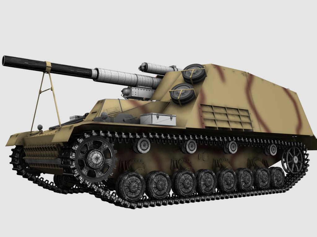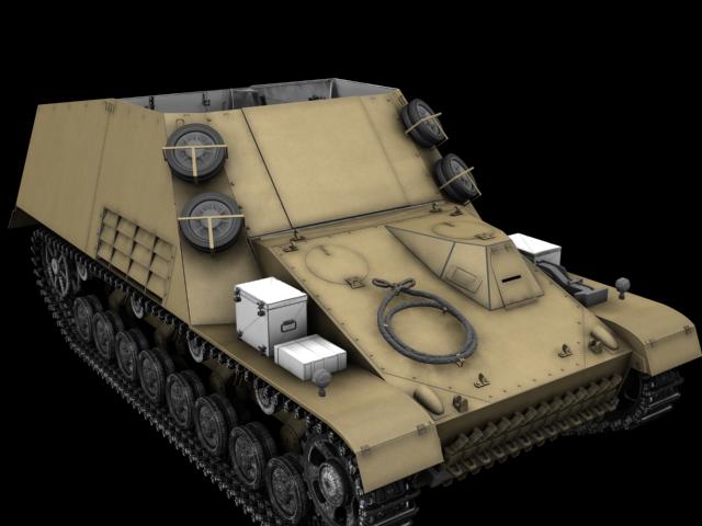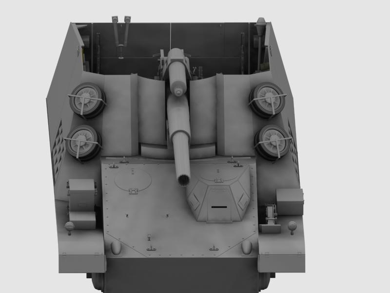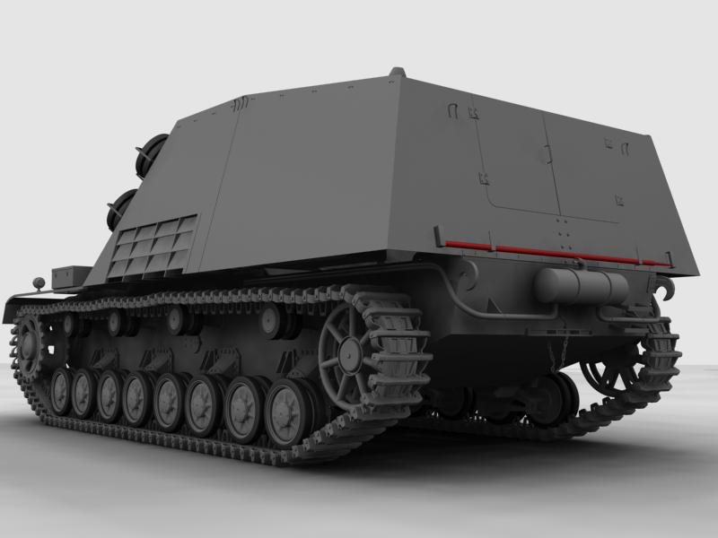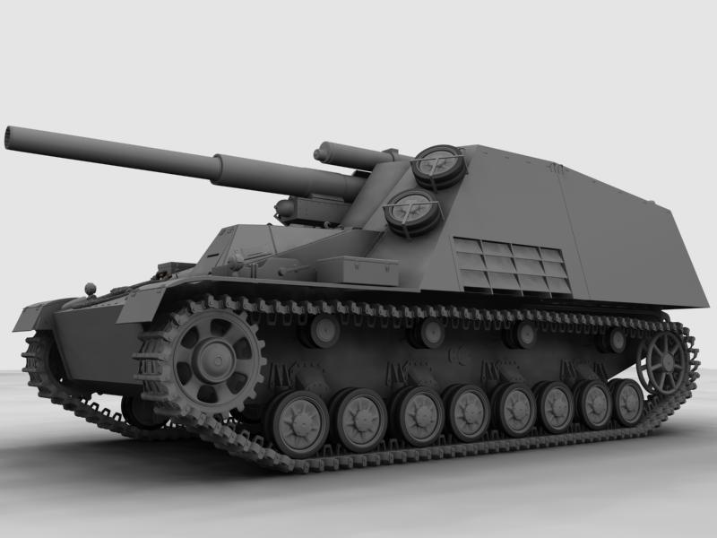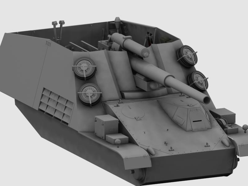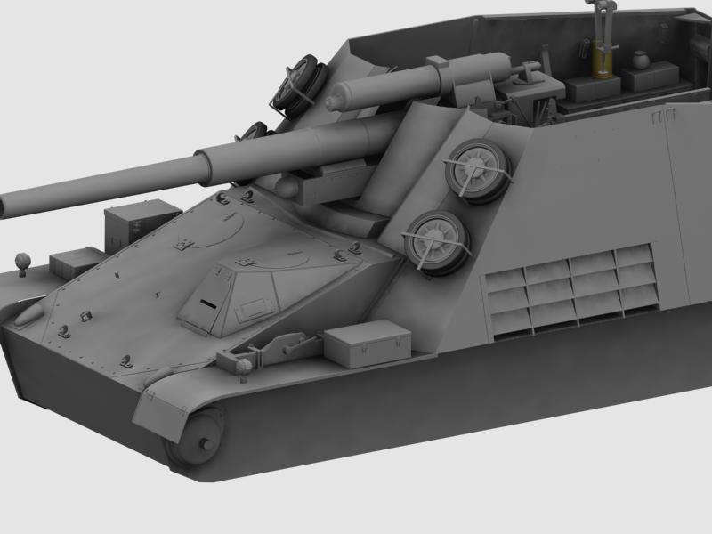 También haré el Nashorn, que usa una casamata distinta y un cañón en vez de obús, ya que era un cazacarros como el Dicker Max. Éste no era un cazacarros sino artillería con orugas (atp, artillería autopropulsada).