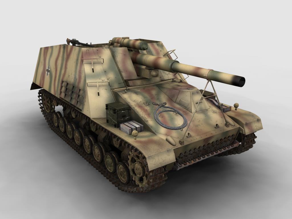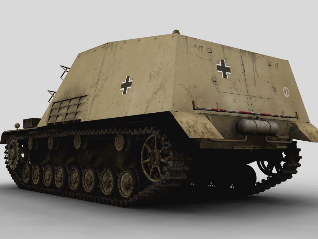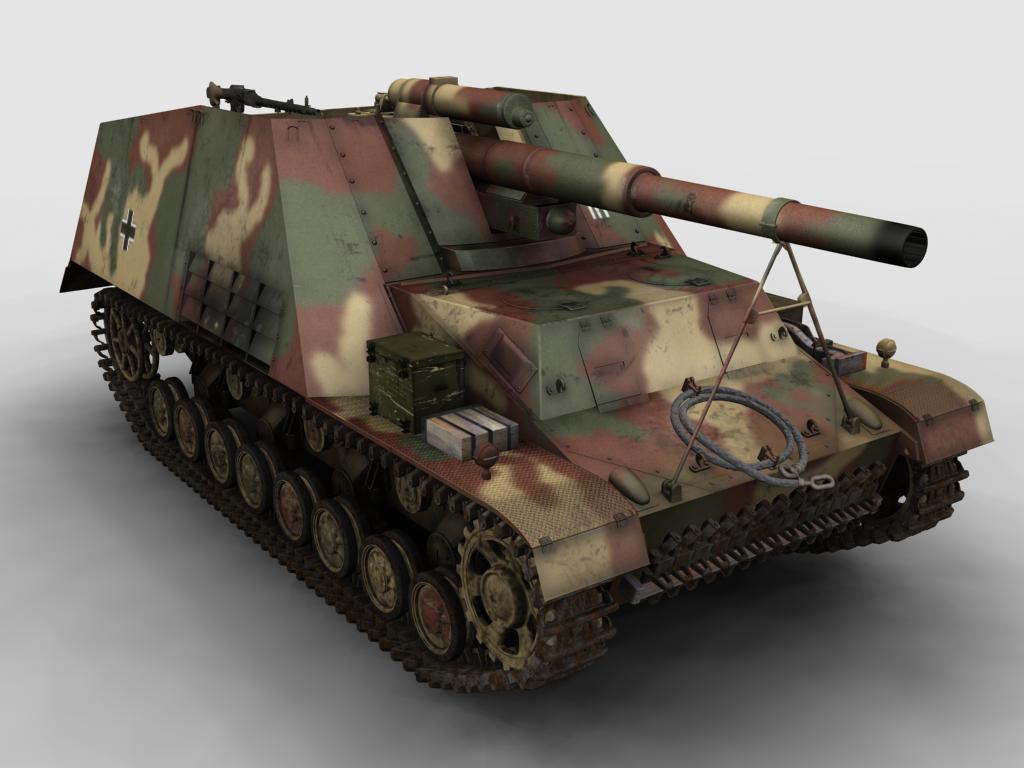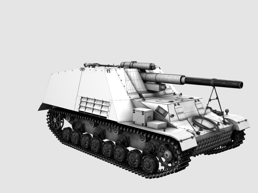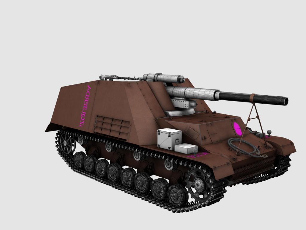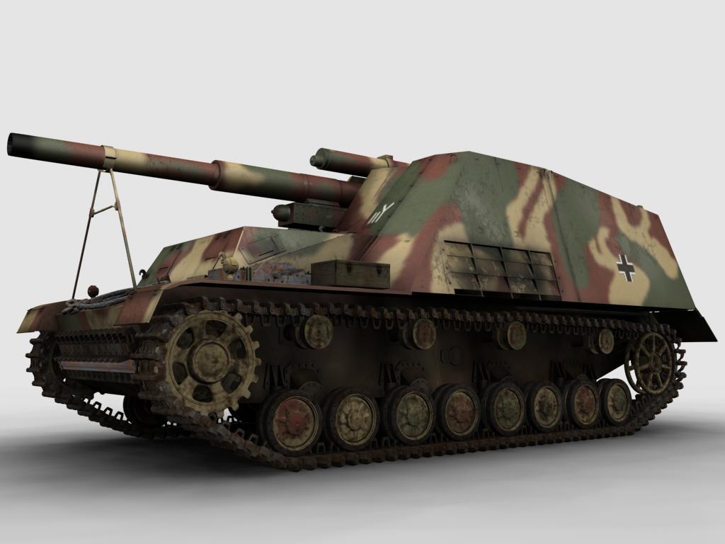 También haré el Nashorn, que usa una casamata distinta y un cañón en vez de obús, ya que era un cazacarros como el Dicker Max. Éste no era un cazacarros sino artillería con orugas (atp, artillería autopropulsada).