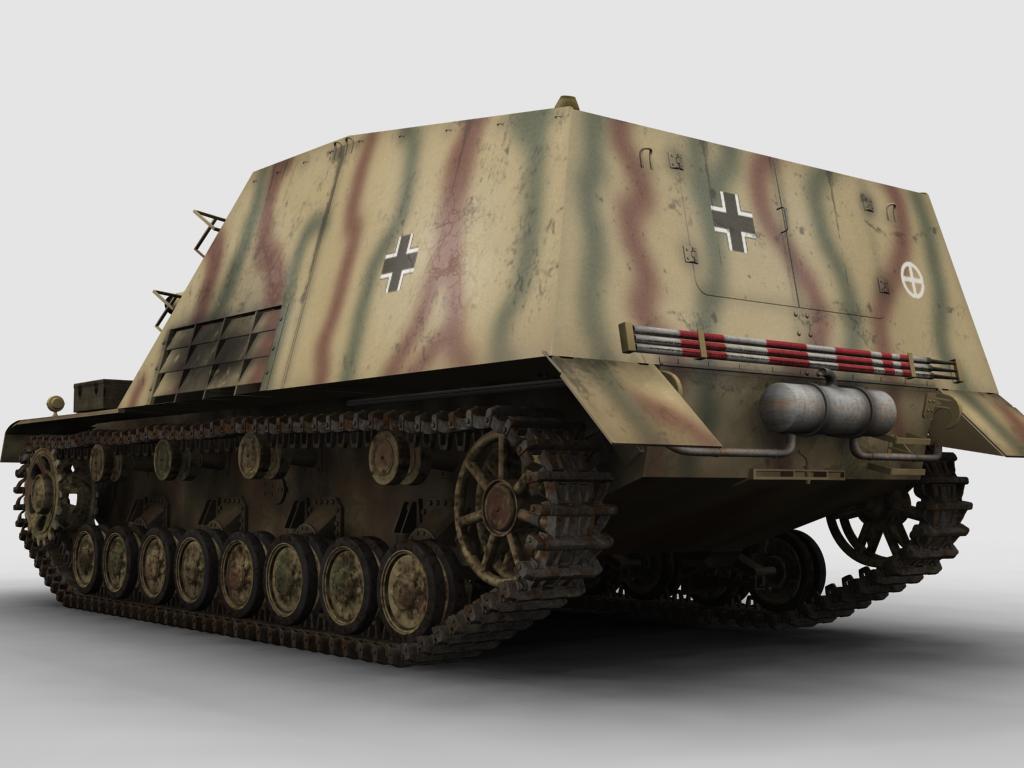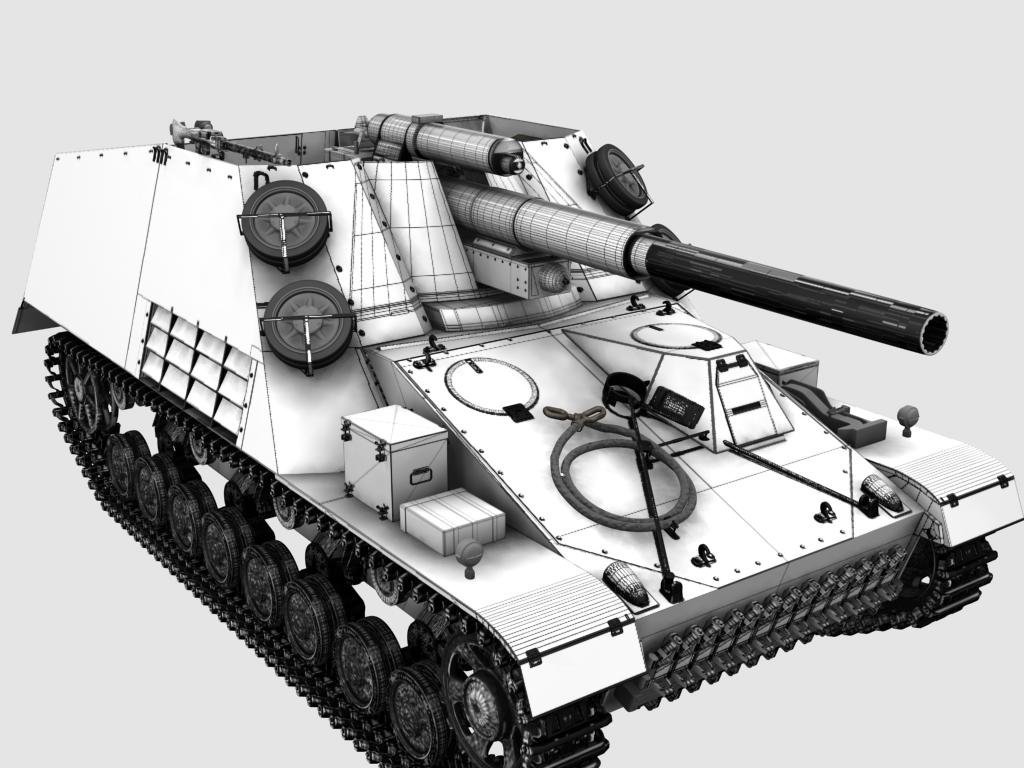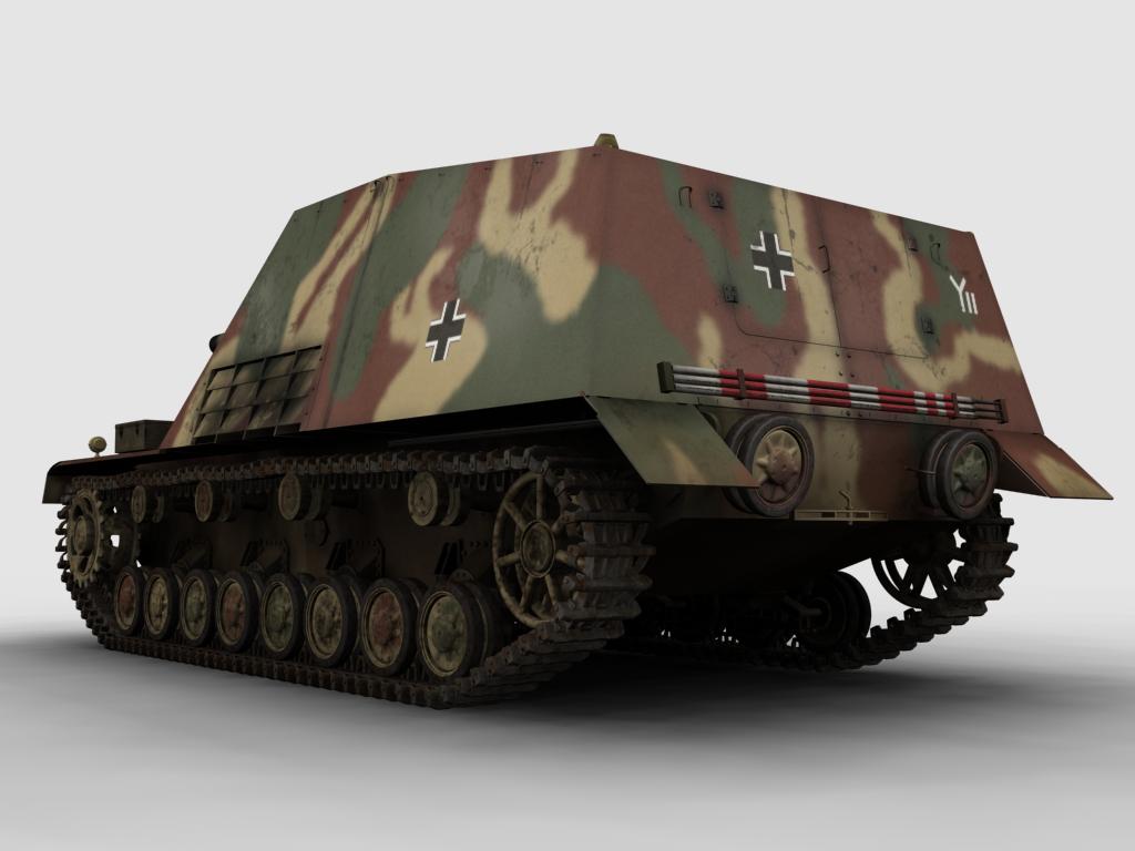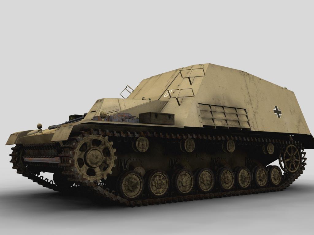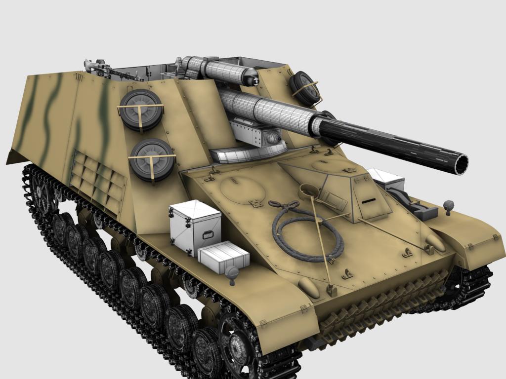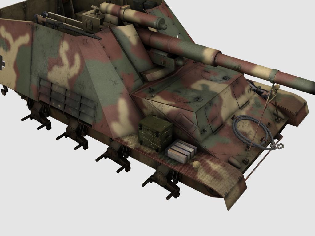 También haré el Nashorn, que usa una casamata distinta y un cañón en vez de obús, ya que era un cazacarros como el Dicker Max. Éste no era un cazacarros sino artillería con orugas (atp, artillería autopropulsada).