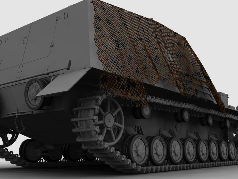 La oruga tiene 4 eslabones más que el Dicker Max, de 99 a 103 unidades por oruga. El Nashorn tendrá 103 también.
