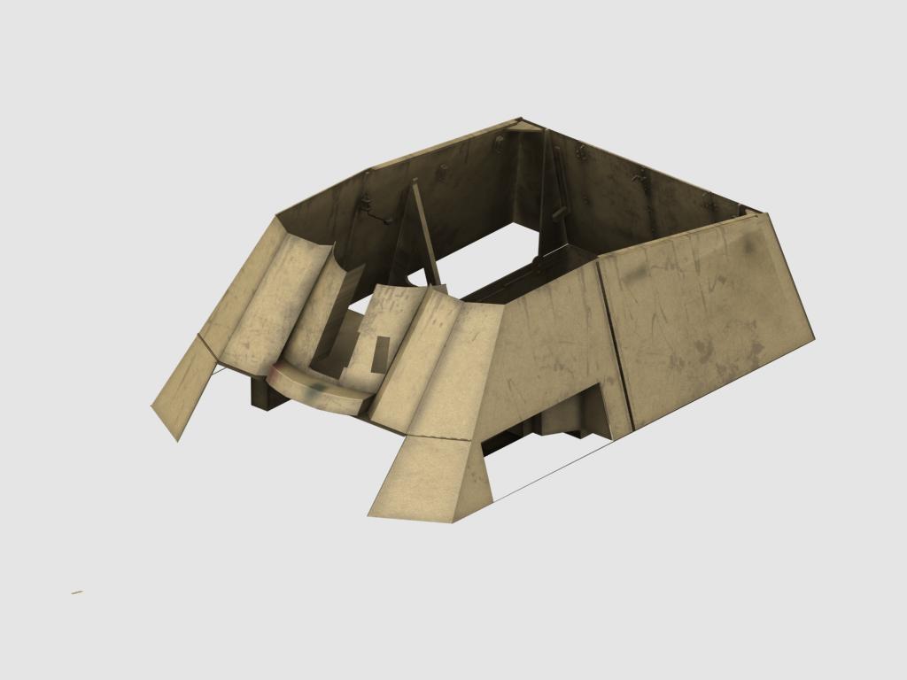 La casamata exterior será lo azulito y su interior lo amarillo. Luego con hacer un mirror estará completada. En la versión del municionado el protector del cañón, esa plancha curvada, será eliminada, al igual que el cañón, y colocada una chapa cuadrada. Llevará una lona y estará lleno de cajas de munición.