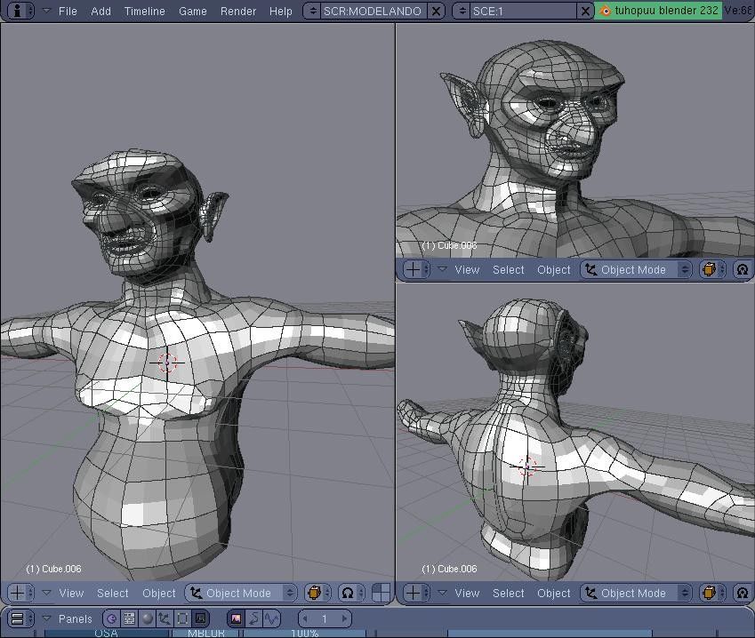 Hola a todos, este es mi primer mensaje aquí. Es un gnomo/duende/bicho feo, que estoy haciendo, modelado en Blender. Por cierto, alguien tiene una buena imagen de referencia de Edge Loops de torso/piernas?