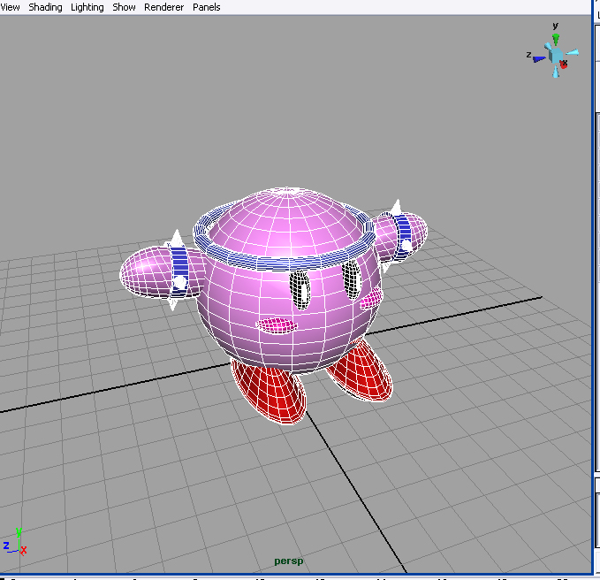 Posdata: no estaría mal que unieras los brazos al cuerpo con un circular fillet. Seleccionas el brazo y el cuerpo: edit Nurbs->surface fillet-> circular fillet. Es sí, no coloques valores muy altos. Debe ser sutil. Saludos.