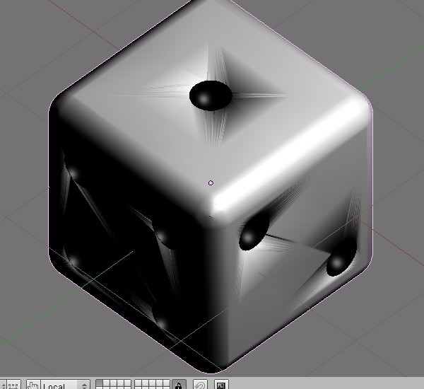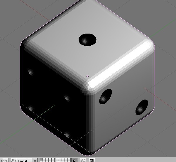 Hola foro. Estoy haciendo mis primeros pinitos con Blender. Haciendo este dado que he modelado con un cubo y bevel para los bordes y restando una esfera para las muescas me está pasando algo con set Smooth que escapa a mi comprensión.