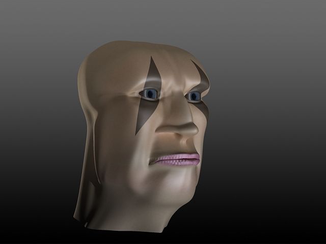 Te recomiendo que subas también una captura de la malla, porque si bien a nivel formal puede que esté bien resuelta, puede que tenga alguna falla a nivel estructural. Yo le retocaría algunas cosas, como, por ejemplo: las aletas de la nariz, que no las dejaría tan, finas. Además, no remarcaría tanto la unión entre el puente de la nariz y la punta de la misma, a los labios les daría un poco más de forma. Ya no digo de hacerlos más carnosos, sino de darles pues, pues forma de labio, sobre la unión de la cabeza con el cuello, si quieres que el personaje sea así, como con papada, te recomiendo que le des un poco de forma al mentón, para que no se haga tan monótona esa unión que comento.