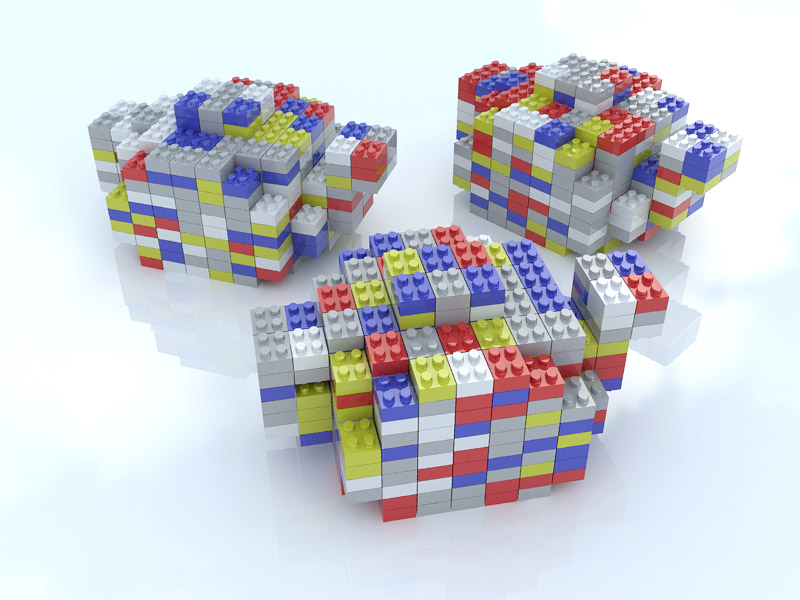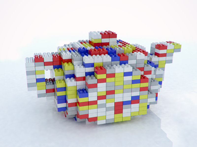 Sustituyo las piezas de lego por teteras en diagonal para volver al tema de la tetera echa de teteras.