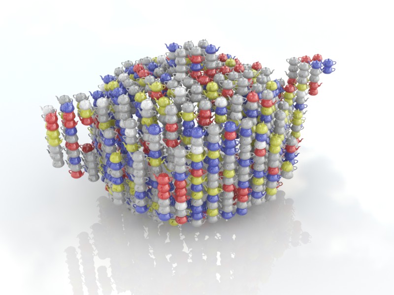 Realizado con scripts de las colecciones de script spot: Voxelizado de una tetera + random selection + Vray displace.