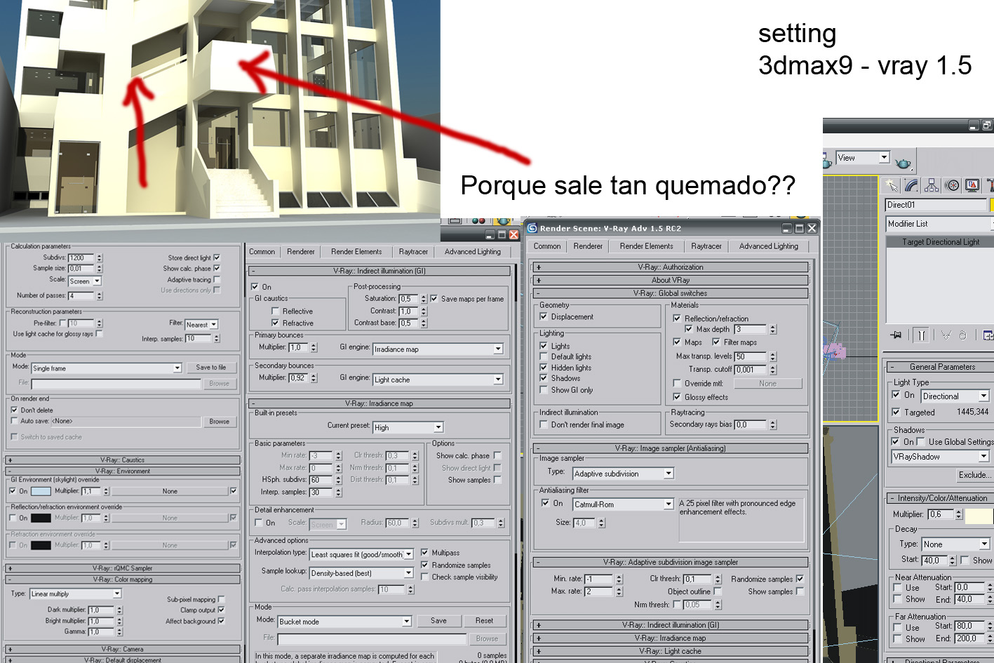 Hola amigos, les dejo estas imágenes, me está complicando porque no sé que parámetros tocar para que se vea mejor, veo que se me queman los materialen, no me convence para nada, a ver si ustedes me ayudan, si? Gracias. Estoy trabajando en 3dsmax 9, con Vray 1.5.