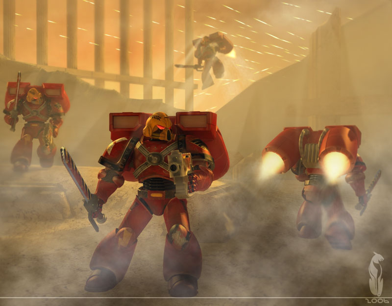 En el planing de trabajo, tras acabar la 1ª escuadra, tenía pensado hacer una imagen chula. Para cambiar un poco el royo y no morirme haciendo marines. La idea es presentar a la escuadra recogiendo sus bajas tras un combate, incluyendo ya algunos elementos del entorno black reach. Tras esta imagen, menos propia de las ilustraciones típicas de w40k, intentaré una de éstas caóticas plagaitas de servoarmaduras.