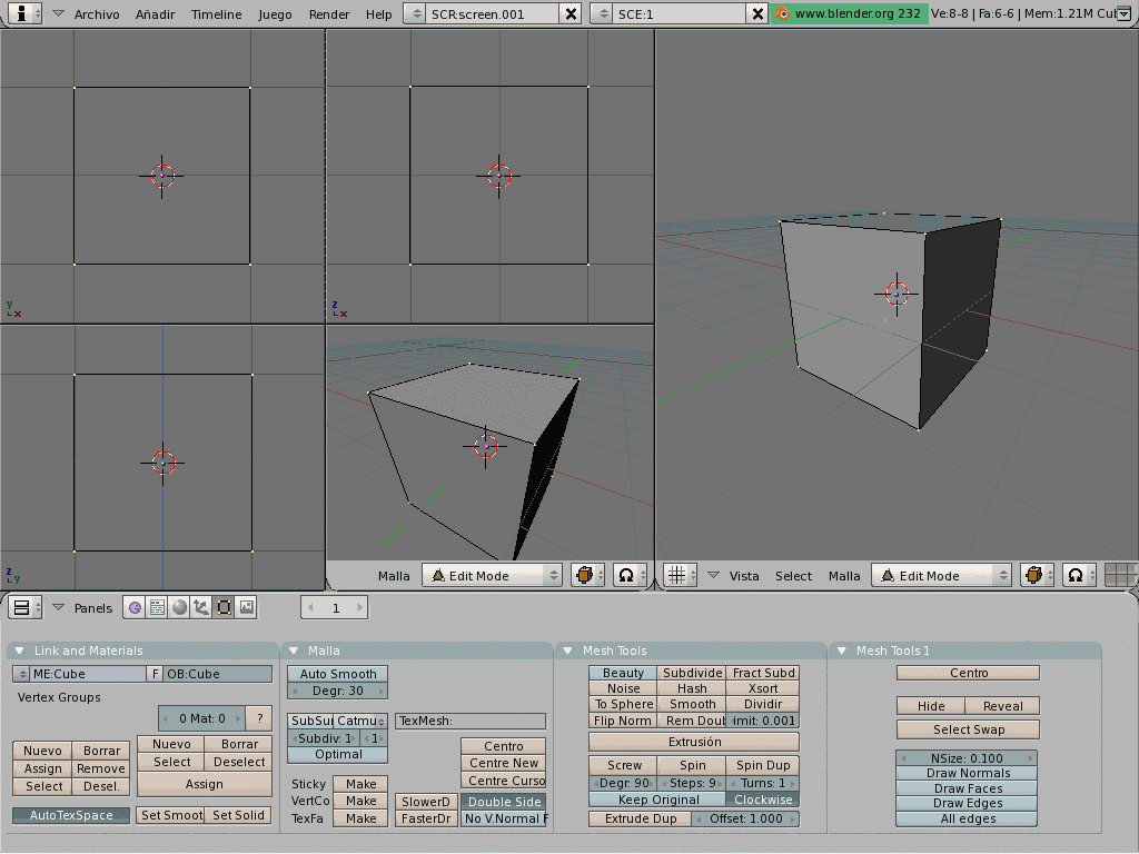 Ahora tengo otra pregunta por si sabéis contestarla. El cubo ese de 7 polys le aplico un Unwrap y un unfold mapping, si el cubo es editpoly me sale una mapeado. Y si es editmesh me sale otro distinto, ¿alguien sabe por qué?