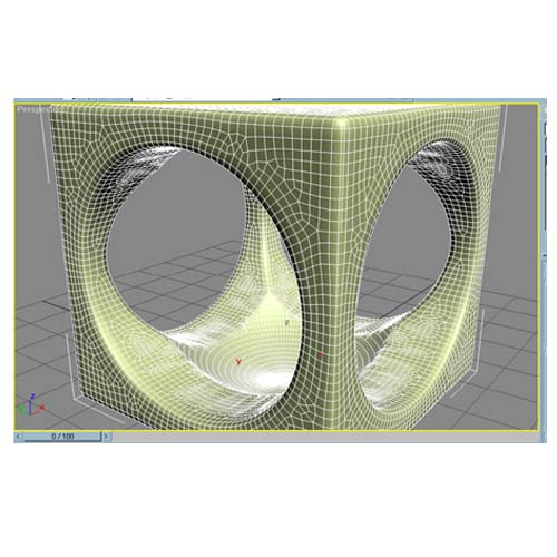 El video lo tienes en el foro, leches, lo tendría que haber comprimido. Son 13;12 Mb. Es bastante chapuza, y no sé si te ayudará a comprender el proceso. No sé cómo se trabaja en AutoCAD, pero ¿a qué te refieres cuando hablas de precisión? En max puedes hacer biseles de aristas metiendo valores numéricos, aunque creo que eso ya lo sabes. Lo primero que he hecho ha sido crear un cubo, convertirlo a Edit Poly, y seleccionar todos sus polígonos. Con la orden inset, aplicada por polígono y no al grupo entero, creo polígonos dentro de cada polígono (una copia, pero a menor tamaño). Luego, subdivido el cubo a mano creando nuevas aristas que parten cada cara original del cubo en 4 (esto se podría haber hecho creando un cubo de 2x2x2), y borro los polígonos copia del interior de cada polígono (si vez el video lo entenderás mejor). Uso un modificador Shell, exclusivo para 3ds Max 6 (aunque se puede descargar por ahí el modificador gratuito Solidify, para versiones anteriores, que en esencia y quitando de un par de cosas es lo mismo), que hacer que una malla compuesta por planos tenga grosor. De este modo, no se tiene el problema que se tenía con las normales al extruir los polígonos para crear este grosor. Luego, colapso, selecciono las aristas del cubo, y las biselo. ¿por qué? Para que MeshSmooth haga una transición no tan suave en esas zonas. Lo mismo hago con las aristas interiores. Aunque no es necesario refinar la malla, ya que, puedes controlar los valores de suavizado de cada arista en el subobjeto Edge del modificador MeshSmooth : con el valor de crease modificas los ángulos de esa arista, y con el valor weight, el peso. Saludos, y espero que te sirva.