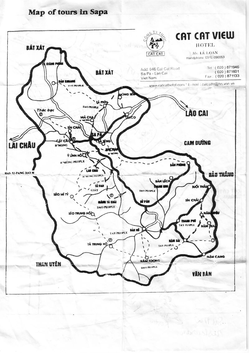 Y así hasta las 5 de la mañana, cuando llegamos a Lao Cai. Salimos de la estación y buscamos a alguien que tuviera mi nombre apuntado en un papel. El susodicho nos condujo a su furgoneta, aunque como los taxistas de allí forman un extraño gremio y nuestra furgoneta no se llenó, nos cambiaron a otra. Creo que estuvimos esperando unos 45 minutos hasta que la furgoneta salió hacia sapa. Para matar el tiempo compramos las sexi-cards y un mechero con luz que proyectaba una escena porno.