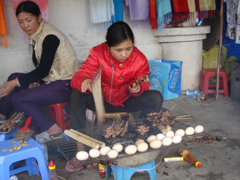 Ya por la tarde, nos fuimos a dar una vuelta por la ciudad. El ambiente general es bullicioso. No hay tanto tráfico como en Hanói o Saigón, evidentemente, pero hay mucha gente por la calle. Uno se ve enseguida (desde que franquea la puerta del hotel) rodeado de mujeres Hmong ofreciéndote bisutería, mantas, cojines, etc. Las tienes desde 10 años hasta edad indefinida.