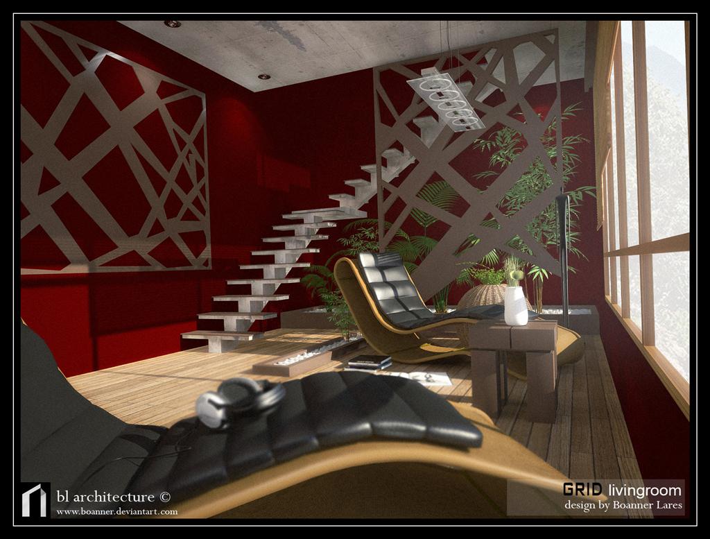 ¿Modelaste tú todo? El panel (por llamarlo de alguna manera) que separa las plantas del salón me gusta mucho, con sus formas geométricas (aunque no me parezca un buen sitio para ponerlo).