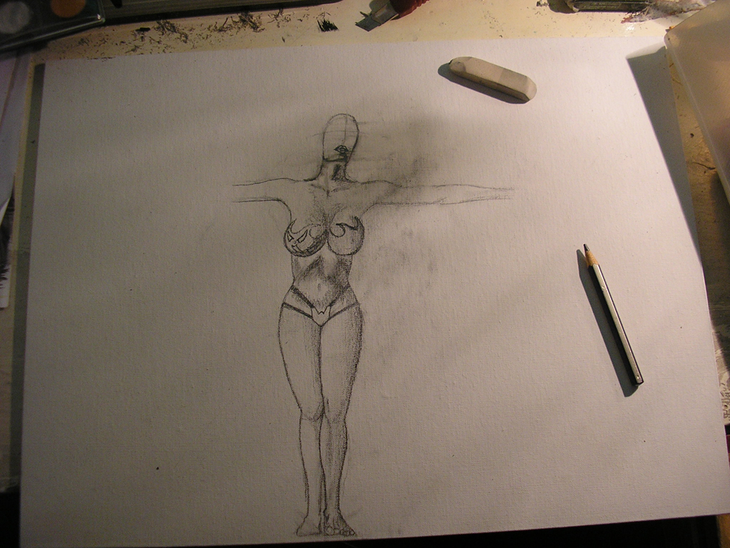 Adjunto el primer avance del boceto sobre el cartón entelado y me despido, voy a ponerme las pilas a ver si puedo participar más en el foro, ando un poco alejado del 3d.