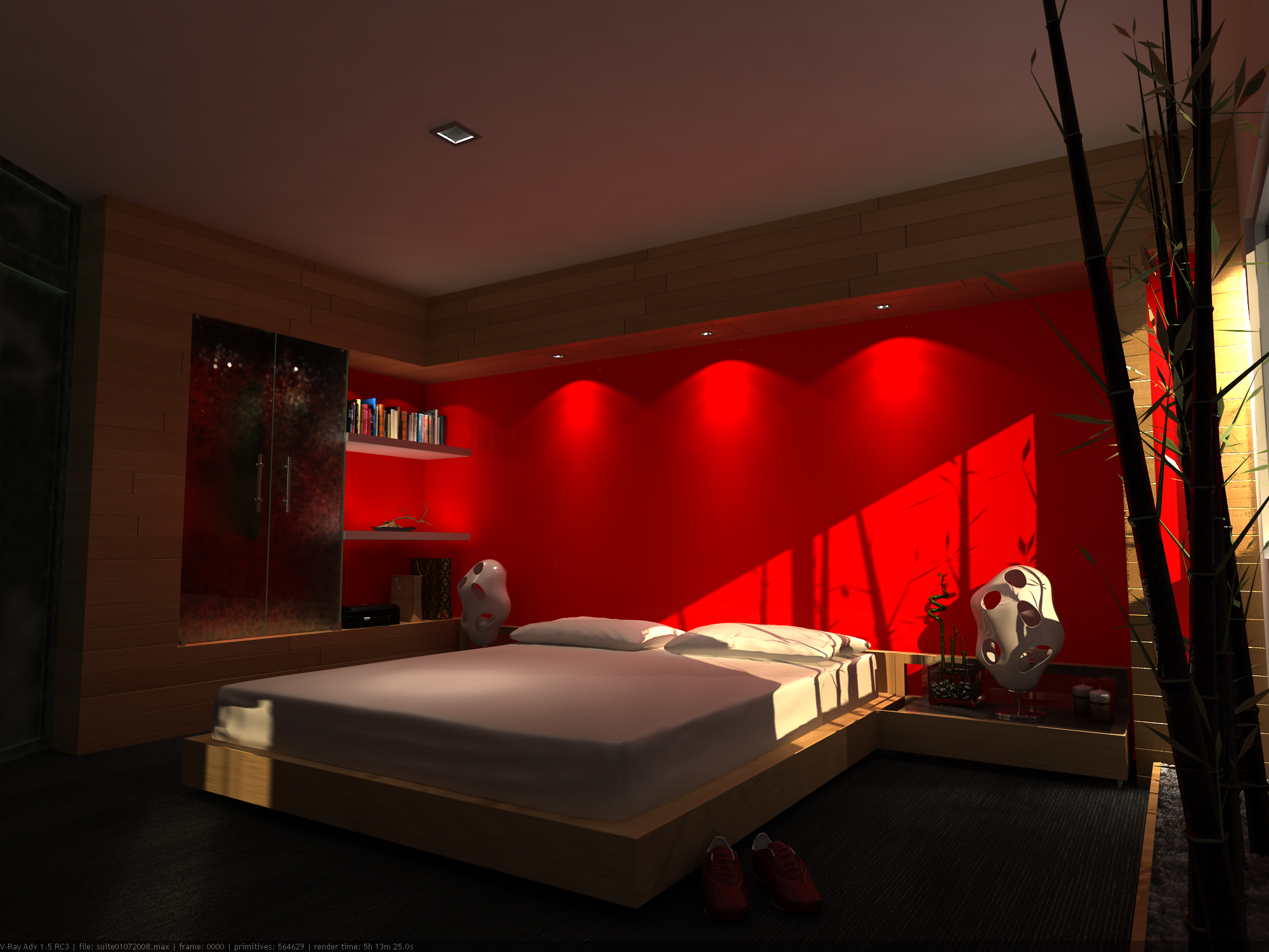 Bueno aquí tengo ya el render que saque con Light Caché y modificando los parámetros que me comentaste también opte por eliminar la luz Vray que tenía en el techo (un plano de luz) y el resultado creo yo mejoro en cuestiones de tiempo lo que no me pareció es el material del cristal que tengo en el closet le cambien algunos valores en refract y no me gustó como quedo, pero eso es cuestión de cambiar el material lo que ya avance gracias los que me han ayudado en este foro es el tiempo bajo de 10 horas a 5 no sé si eso es normal, pero ya es mucho lo que mejoro con unos simples movimientos aquí les adjunto los resultados y el material que no me gusto.