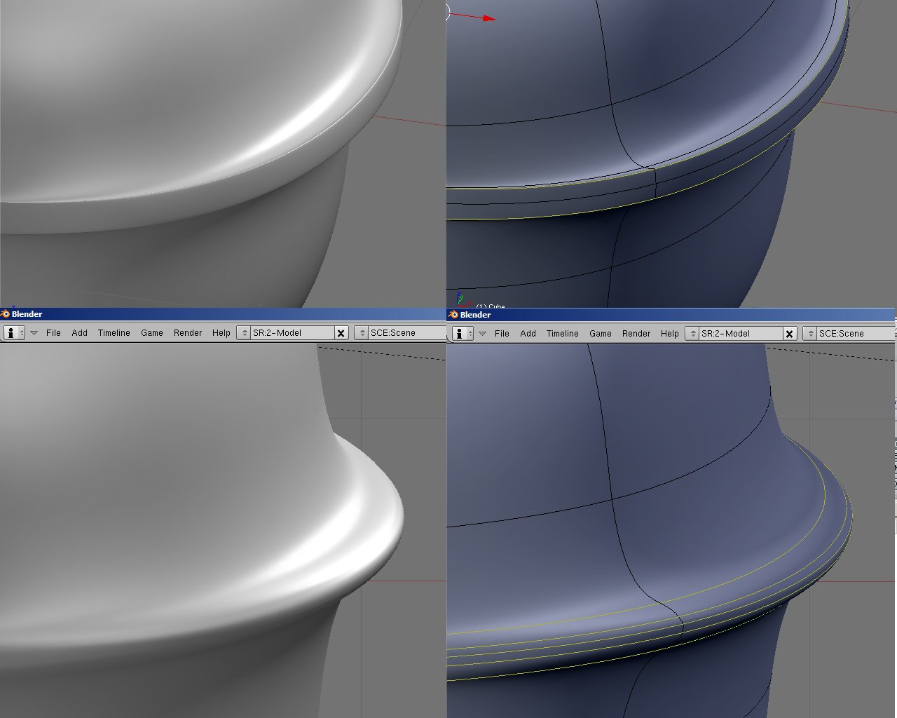 Claro, también es una posibilidad, pero, la misma es crear las aristas no cerca, sino en el mismo punto, es decir que parece que mirándolo a simple vista parece que haya una arista, pero en realidad que hayan dos en las mismas coordenadas, así, podría hacerse hasta un cuchillo afilado.