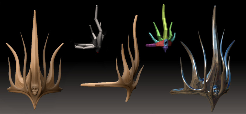 Muchas gracias amigo, con respecto a los materiales los primeros solo era uno de los Shader de ZBrush. Dejo un pequeño avance de la corona.