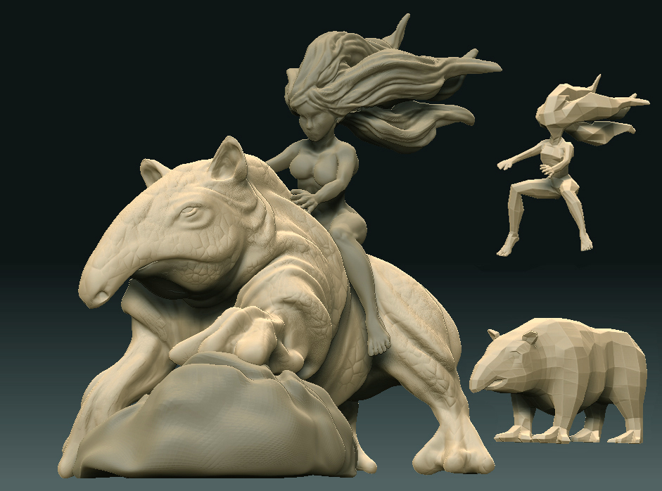 La geometría base la hice con Zspheres y no sé si es por falta de conocimioento o que, pero la retopología de ZBrush es para llorar. Saludos.