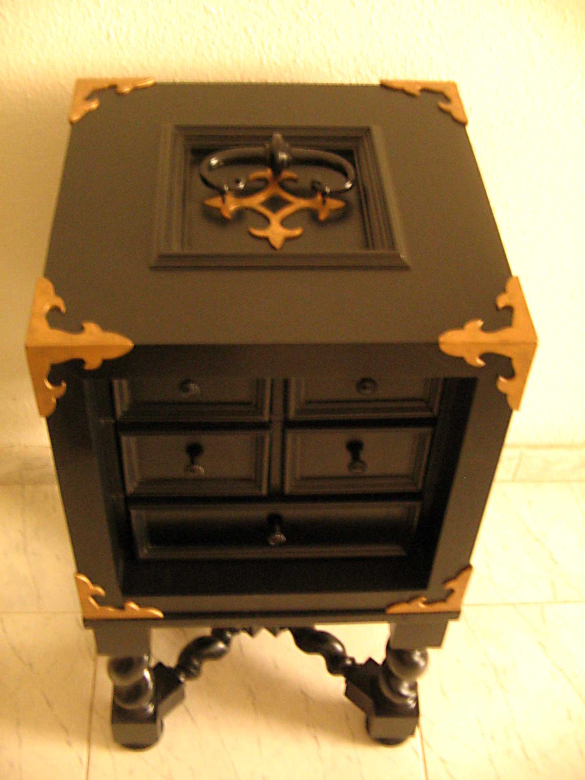El original(el de la casa de muñecas) es de color negro (ébano), pero quise aprovechar el trabajo para ir practicando con las texturas tipo imagen, en este caso de veteado de madera.