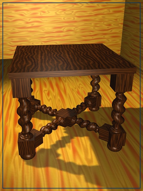 Hola de nuevo: He vuelto a texturizar todo de nuevo, esta vez en Yafray y he conseguido poco más que familiarizarme un poco con sus botones.