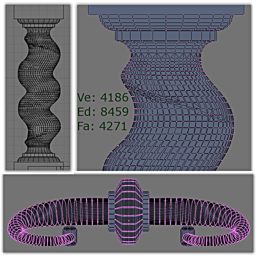 Y bueno, a continuación, os adjunto unos wires donde podréis comprobar que no ahorro polígonos.