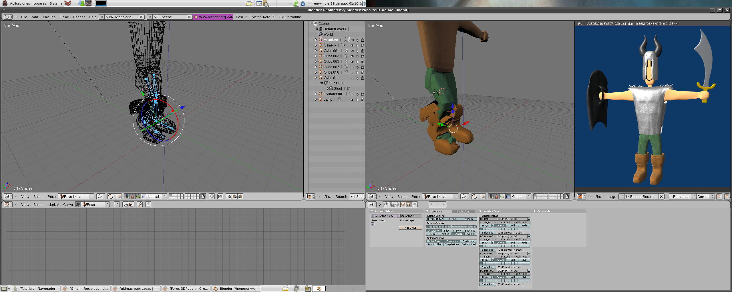 Saludos estoy iniciándome en Blender después de un fracaso con Maya, y la verdad es que me encanta, he modelado un hombre sencillo y ahora me gustaría aplicarle una animación simple(eso creo) solamente quiero que de unos pasos hacia adelante. Tengo un par de tutoriales que explican cómo animar modelos más simples que el mío como cubos y tal, el problema es que cuando pongo el armature luego en Pose Mode al mover algún bone no mueve la totalidad de los polígonos, se deja algunos por el camino. Muchas gracias y si alguien tiene alguna tutorial de cómo hacer esto no importa si está en inglés, se lo agradeceré muchísimo. Saludos a todos Blender.