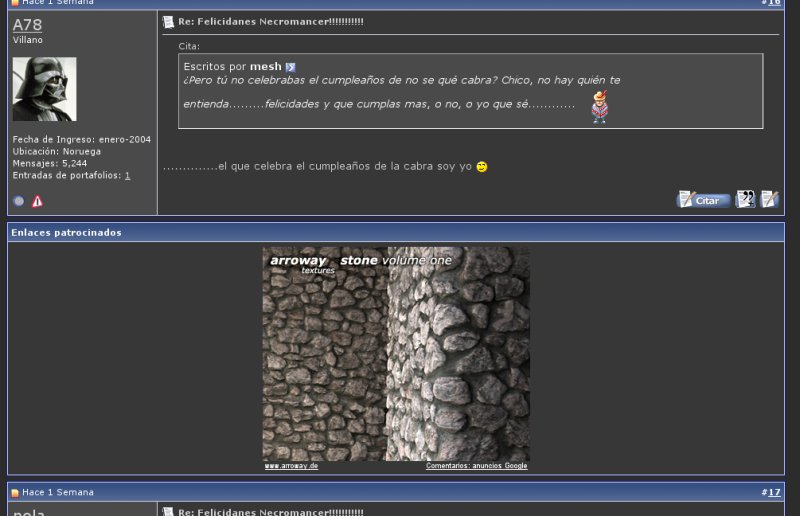 Felicidades Necros. (ayer cumpliste años). Augusto que cumplas muchos más, perdona por la demora. Salud.