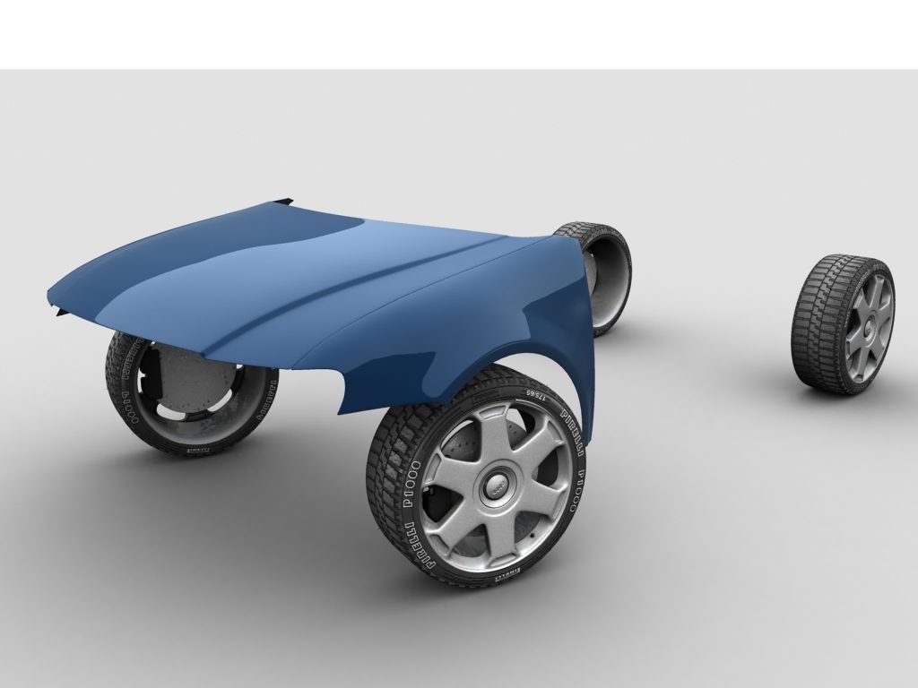 Puede que la idea no resulte del todo mal, pero en estos momentos a expensas de que el render quede mejor o peor estoy más interesado en tomar conocimientos del boxmodeling, lowpoly y tratamiento de la reflexión que estar pendiente de si el modelo se sale de lo normal o es simplemente un coche más que rula por las galerías de internet.