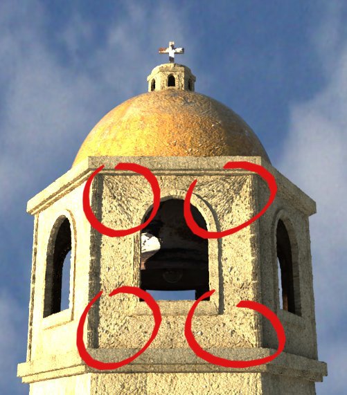 Si te vas a centrar sólo en la cúpula, el campanario o lo que sea, podrías trabajar un poco más en la composición y dar más importancia a lo que quieres mostrar. Por ejemplo, podrías aumentar el Lens de la cámara y jugar con el aspecto aplanado del objeto. Suerte.