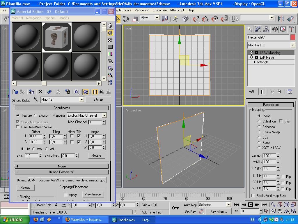 3- abro el cuadro de texturas > mapa > color difuso > elijo bitmap y lo creo.