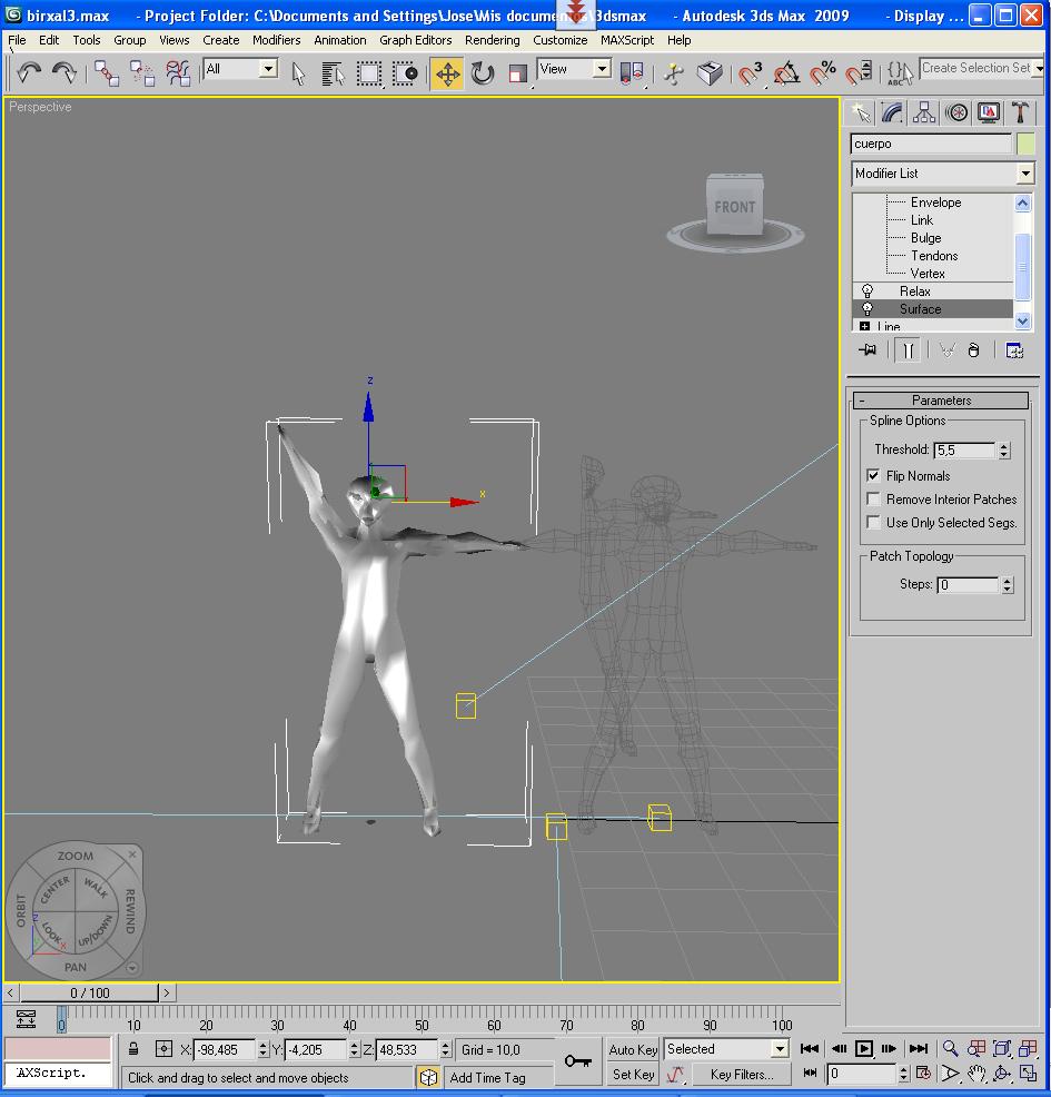 En una estoy modelando mi rostro y la otra es un matachito (personaje):p, que le coloco bípedo, y a pesar de ser superficies se pueden texturizar.