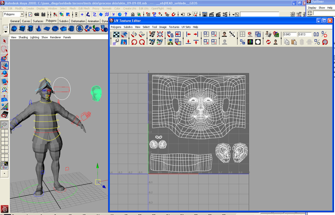 Hola amigos. Estoy rigeando un personaje y tengo algunas cosas que resolver respecto a las UVS de la cabeza del character.