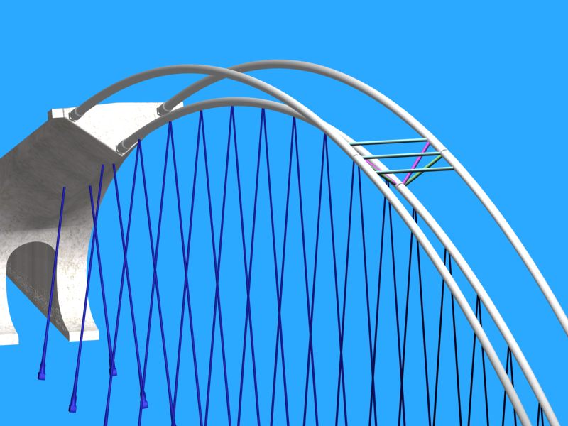Hola. Estoy haciendo mi primer modelado un poco en serio con 3ds Max 6. Es el puente de Lusitania en Mérida. Tengo todo ya modelado (un modelado algo simplificado con respecto al original, que todavía estoy muy verde), salvo la estructura triangulada superior, de la cual sólo tengo los arcos principales y un módulo de la celosía.