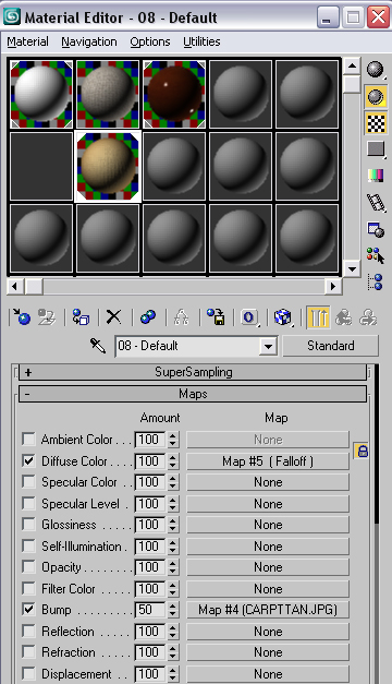 Bueno muchas gracias por la ayuda. Mira estos son algunos renders de intentos. Los 1ros 2 salieron muy mal no sé porque, el 3ro creo que es el mejor, pero igual no sé, me parece más a una pared que ha tela, lo hice con el fallof en el diffuse como me mostraste vos, pero con colores rojos, y en el Bump puse la textura que quería yo, también probé con la que pusiste vos y con esos colores, pero era lo mismo, el UVW lo acomode le puse más veces repetido para que sea más chico todo y esto fue lo que me quedo, igual no me convence mucho, me siento un inútil.