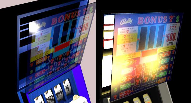 O, por ejemplo, una máquina tragamonedas donde hay una caja (objeto luminoso) y se ilumina nada más que el sector que dice del acrílico que está adelante.