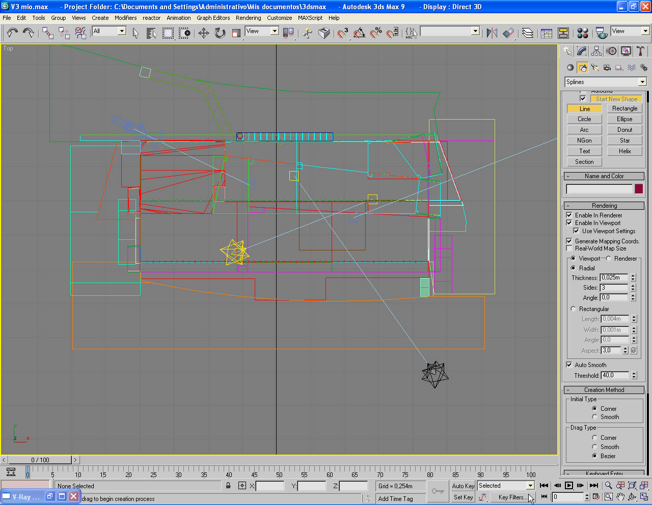 Es difícil explicar esto, pero es así, no sé el porqué, cuando le doy a Spline y pongo a dibujar una línea, me sale un tubo. ¿alguien sabe decirme que ocurre? Max 9.