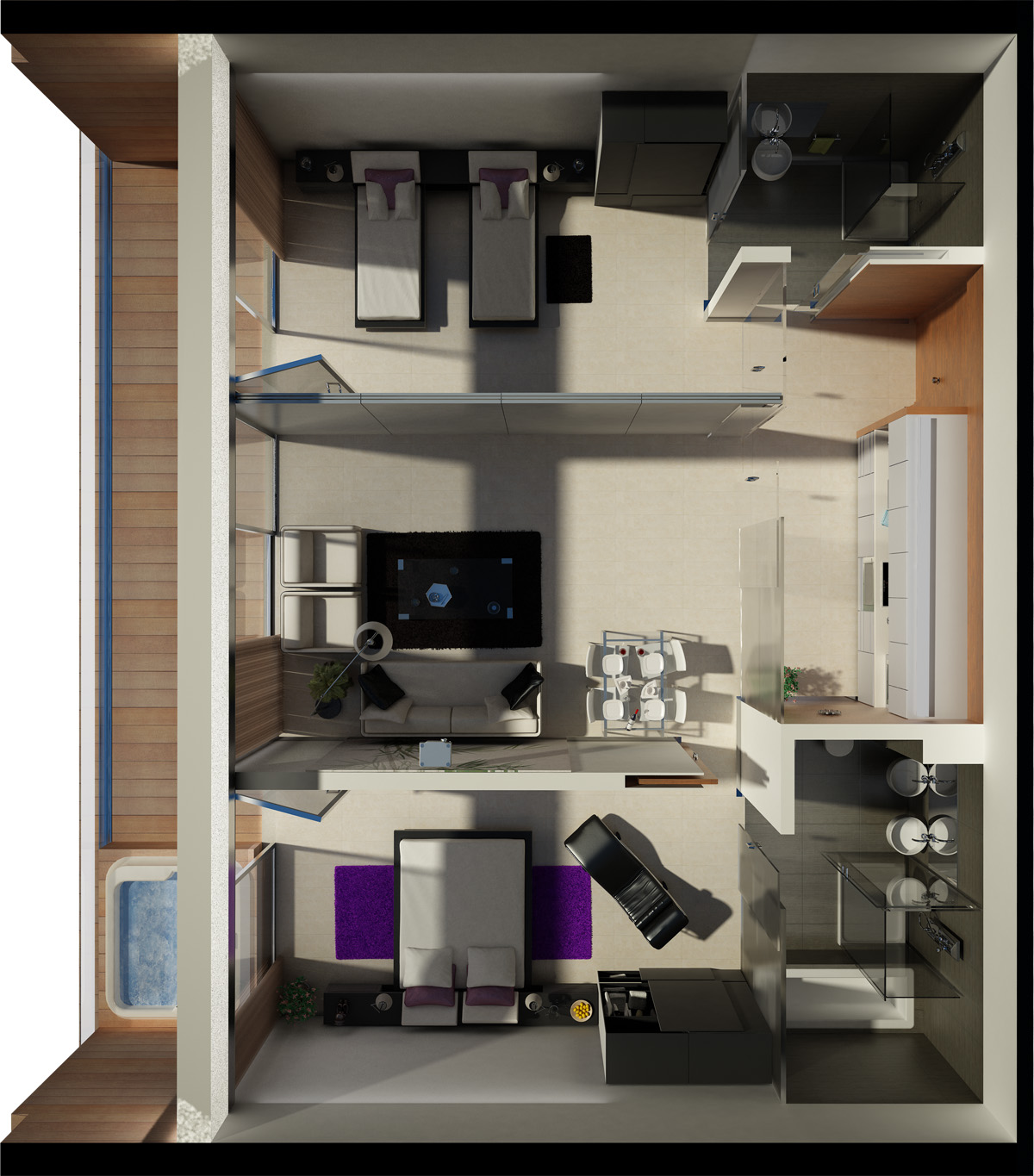 Tremenda choza. En el tercer render quitaría las cheslones de le Corbusier, porque parece estar nada más entrar al dormitorio, vamos, que te la comes.