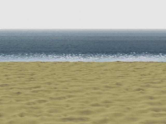 Bueno creo que la textura de la arena es muy monótona y sin detalle, y el borde de la playa no debería estar más liso ya que, chocan las olas. Un saludo.