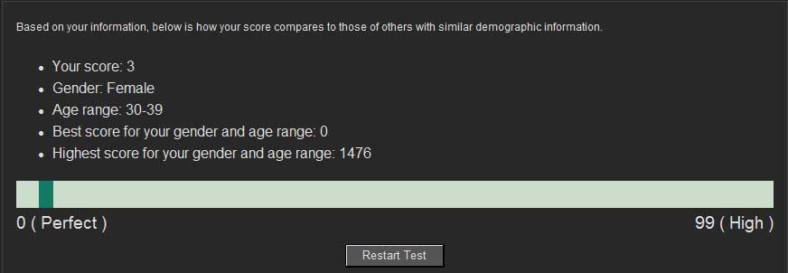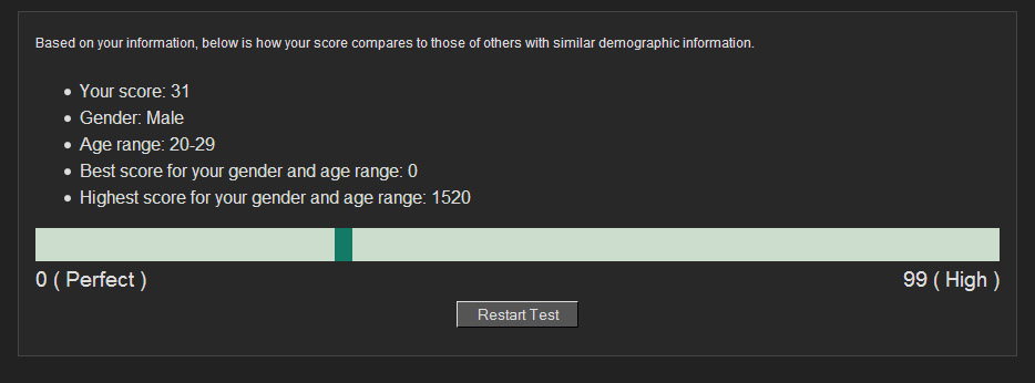 Aquí mi test. No está mal para 48 tacos y sin gafas todavía.