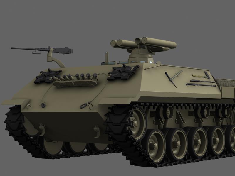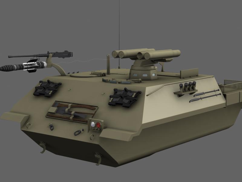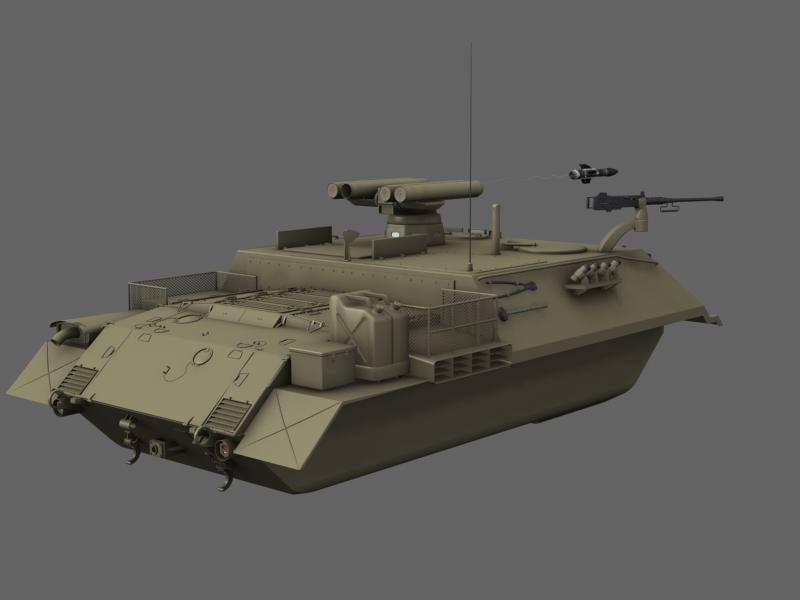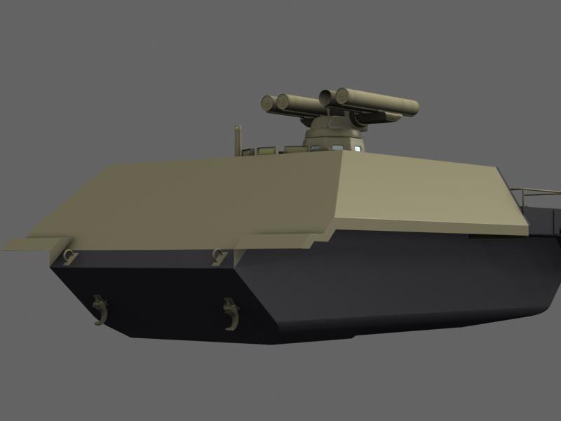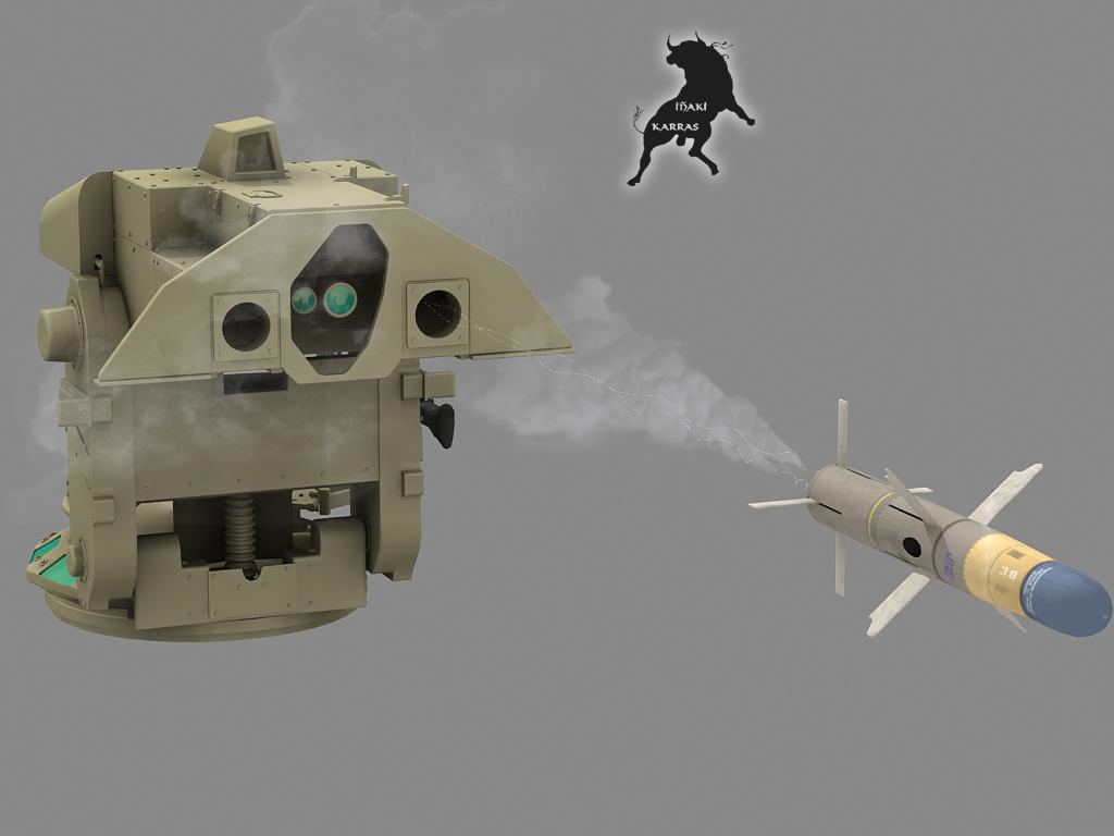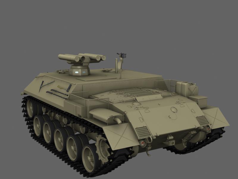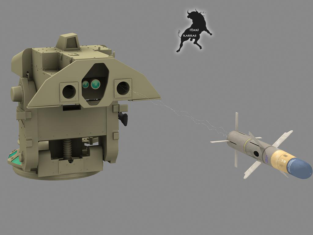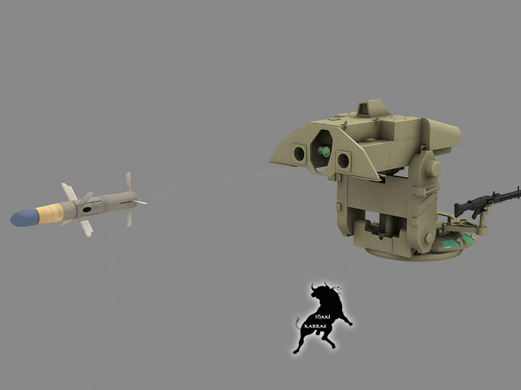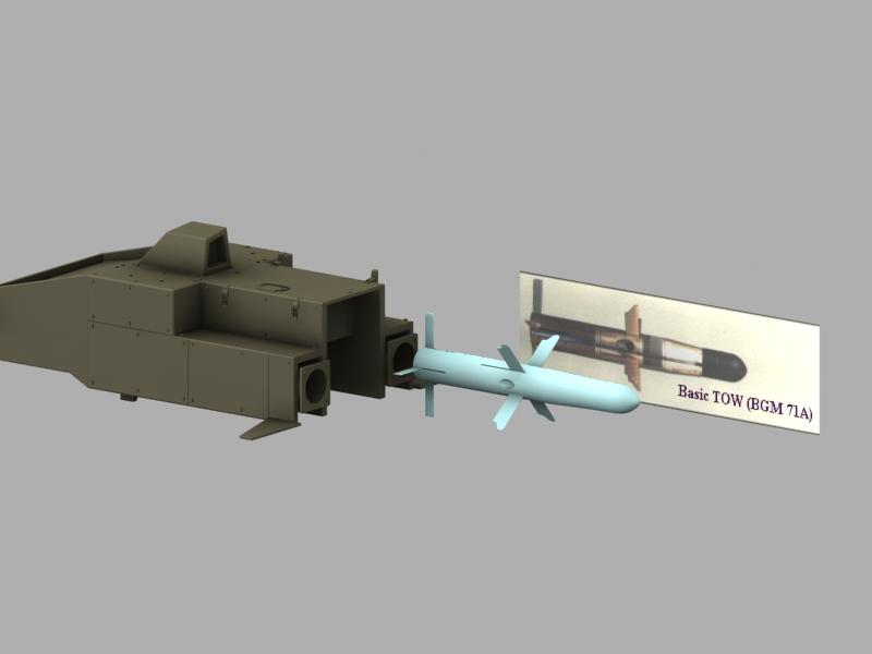 Bueno esto s lo que ha salido por ahora. La base de los misiles, poco menos que me la he inventado, ya que se ve que tiene forma trapezoidal y que sale de algo cilíndrico, supongo que, el eje de rotación, así que, he hecho éste apaño que veis, el pego lo da. Los Canister de los misiles están mapeados y texturizados con una capa base (por eso veis esas manchas negras). Ahora modelaré un misil saliendo del vacío, es casi del mismo tamaño que el Tow el cual he usado de escala, así que, no os quejéis del tamaño de los tubos que tengo las medidas. De la altura del conjunto torreta puede, pero como no hay más fotografías me aguantaré.