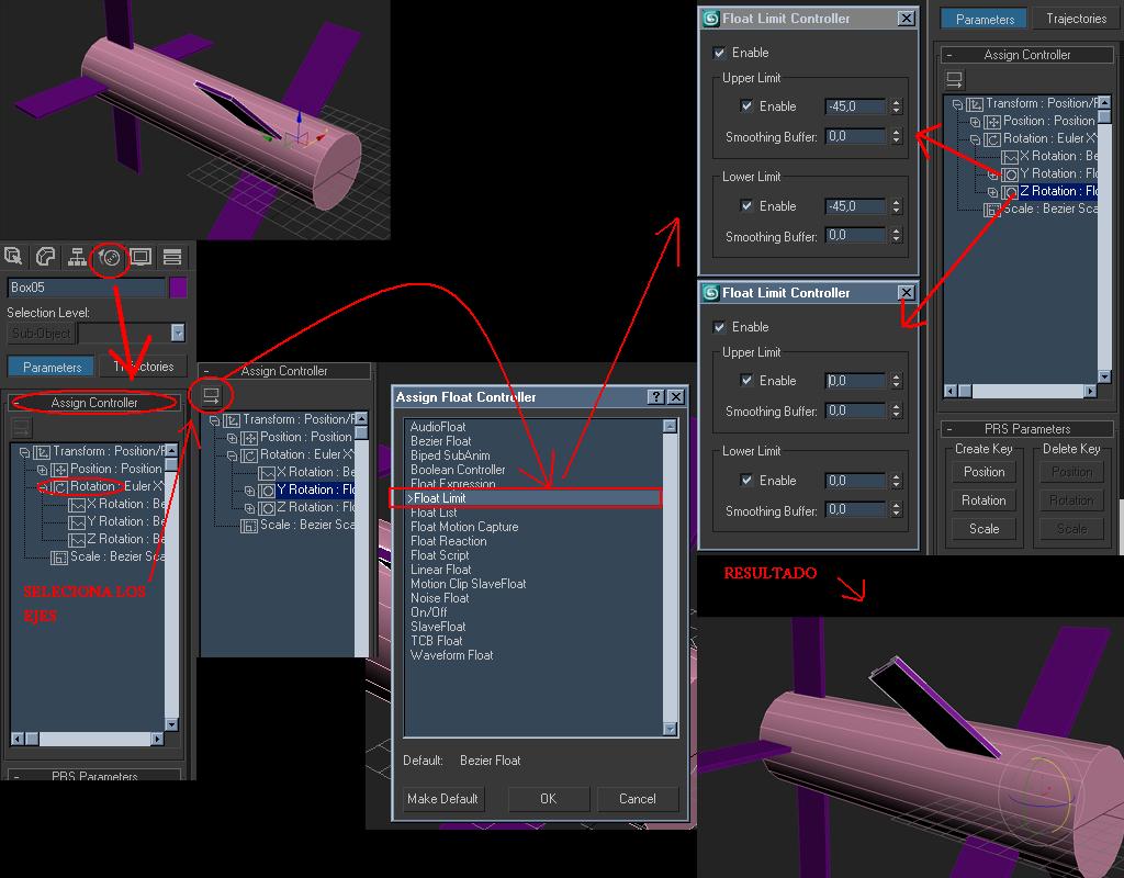 Por riggear me refiero a que todo siga a un patrón, vamos, los Canister son independientes, aunque están mapeados en base a dos sólo, el vacío y uno lleno con sus tapas. Luego los he independizado en 4, y cada uno se mueve según se gire su base.