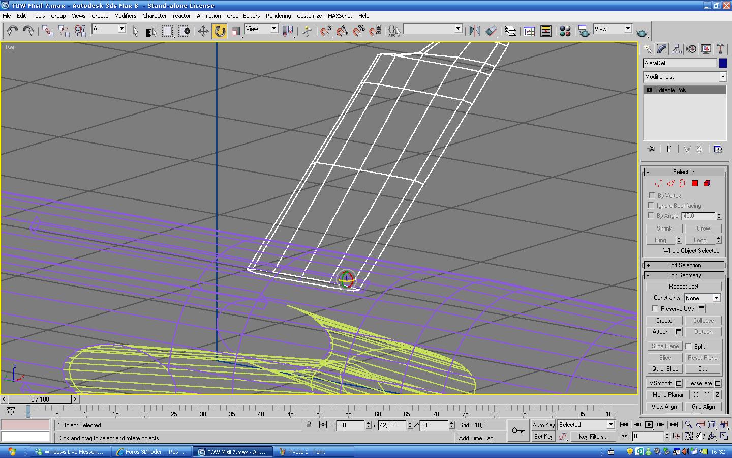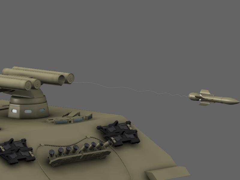 Bueno acabado ya. He escalado el tamaño de la torreta y misil ya que era demasiado pequeño. Uno más a la buchaca. Probaré con el Vray a ver si no explota, éste tiene unos 200 y pico mil polys menos.