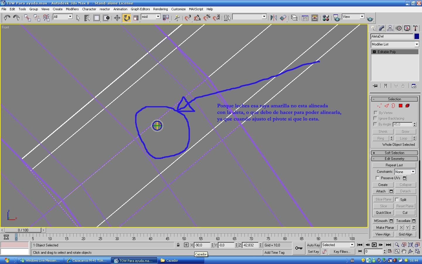 Luego empezaremos a modelar el frontal, con sus faritos, cubre faros y demás gilipolleces, yendo hacia arriba, que es dónde está el meollo, porque los visores y escotillas van embutidas en la barcaza. Dejaremos para el final el capot del motor con todas sus rejillas de ventilación, aunque eso es fácil, solo conectar Edges y extruir.