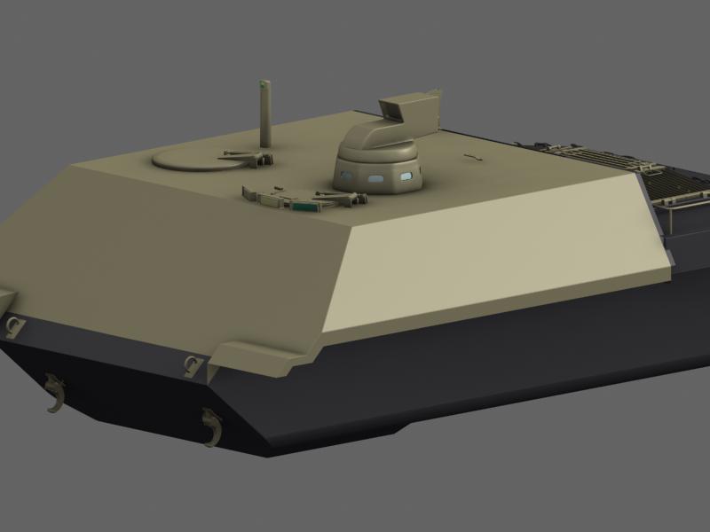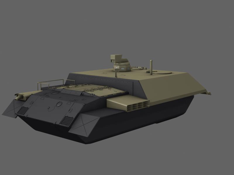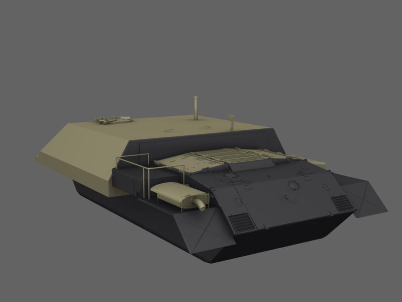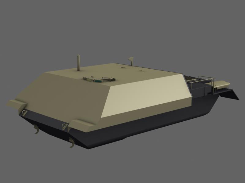 Ahora dejaremos esto como esta y me dedicaré a modelar las orugas y las suspensiones, ya iremos retocando la barcaza, el caso es que la forma básica ya está conseguida, el resto es añadir detalles y cajas.