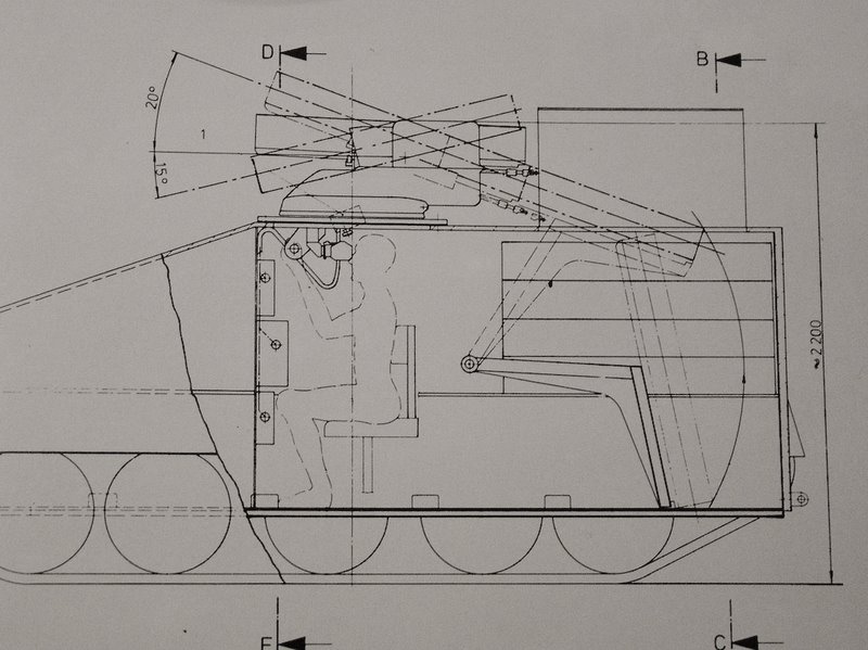 Y os subo también el esquema que me han pasado del corte de la torreta fijaros en la forma de las trapas, se abren hacia fuera los lados, y recargaba los cuatro a la vez, a manita, con esa palanca.