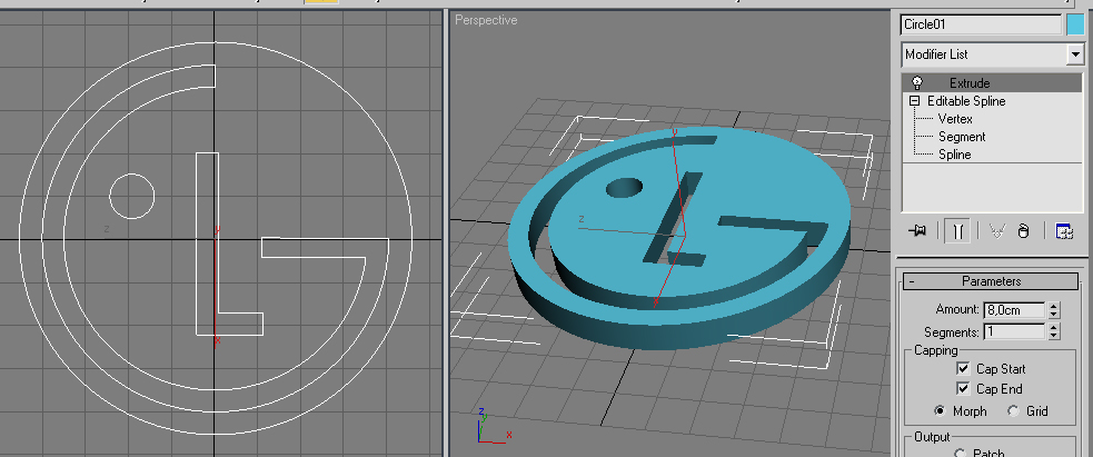 Hola amigos. Quería preguntaros como haríais el logotipo de Lg. Estuve intentando en 3dsmax 2008 partiendo de un cilindro con poca altura (como una moneda, para que nos entendamos) y luego bolean dos cajas (para formar la l), unas splines para la g y luego extruidas y las resto del volumen, y el ojo es un cilindro que también reste.